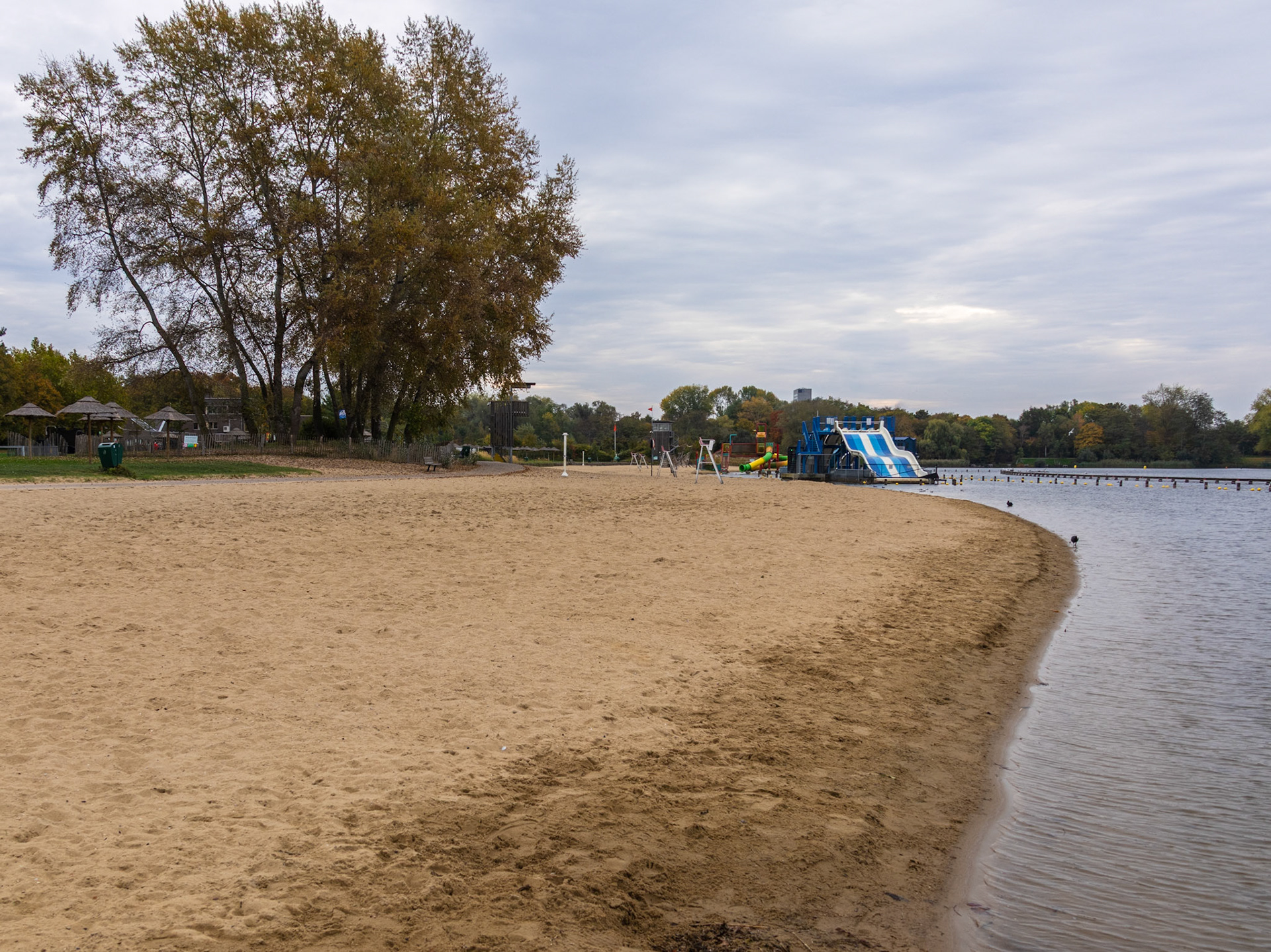 Het lege strand in de Blaarmeersen