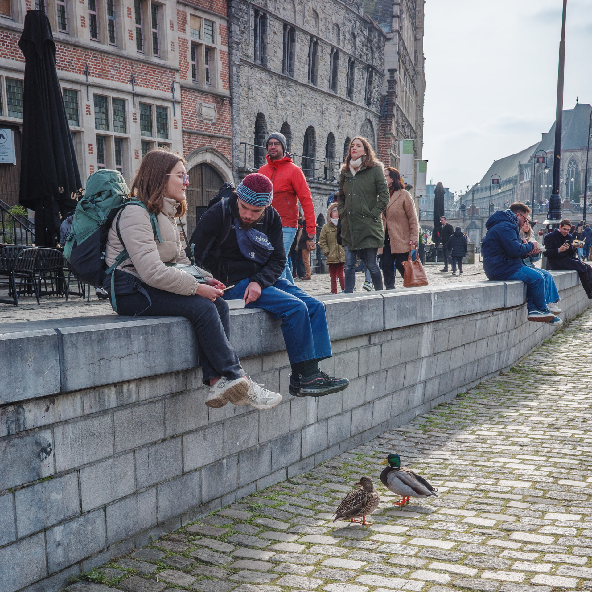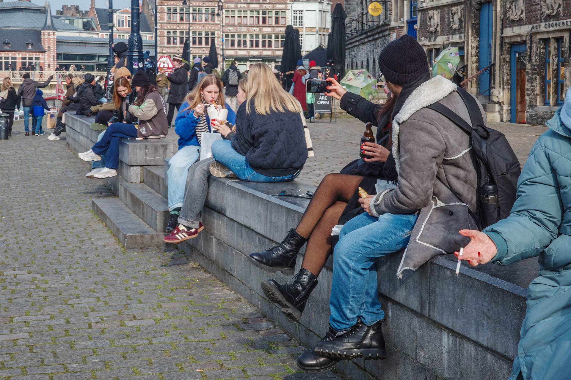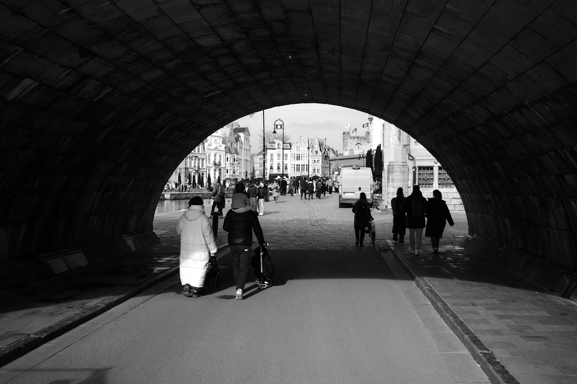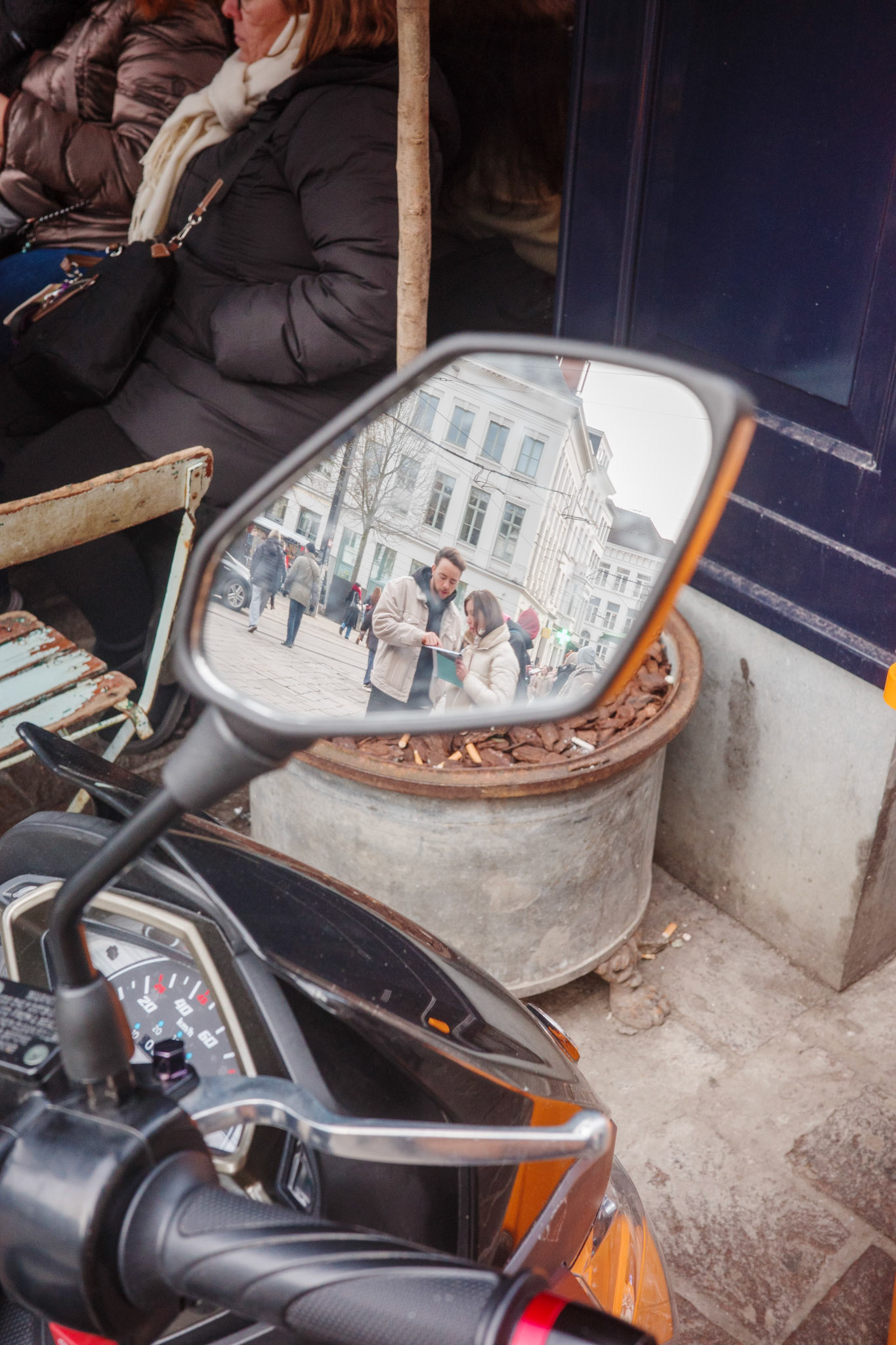 Deze foto’s zijn gemaakt in de publieke ruimte tijdens wandelingen waarin ik mijn eigen angsten en drempels rond straatfotografie onderzocht. De mensen in beeld zijn toevallige voorbijgangers en maken deel uit van het visuele verhaal van het moment.