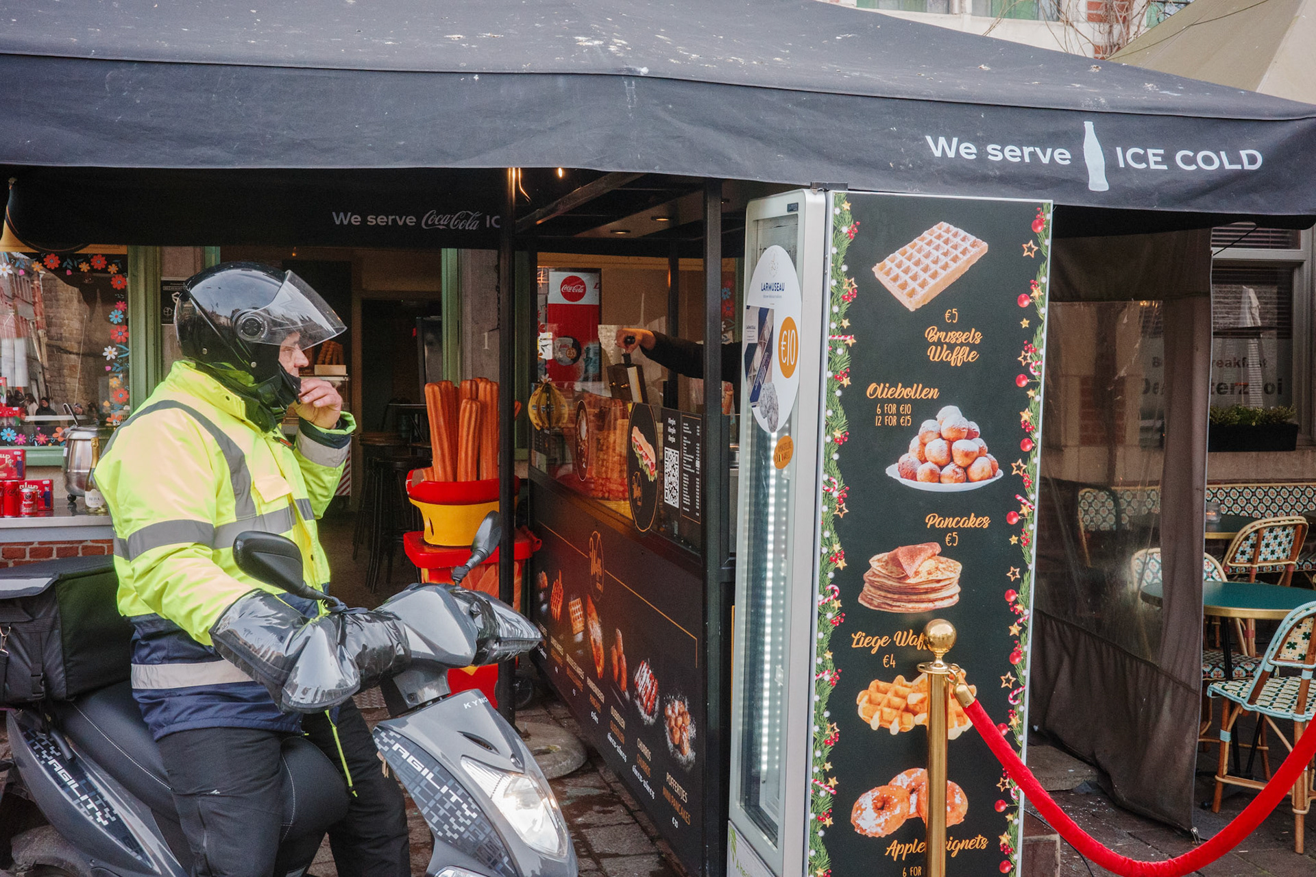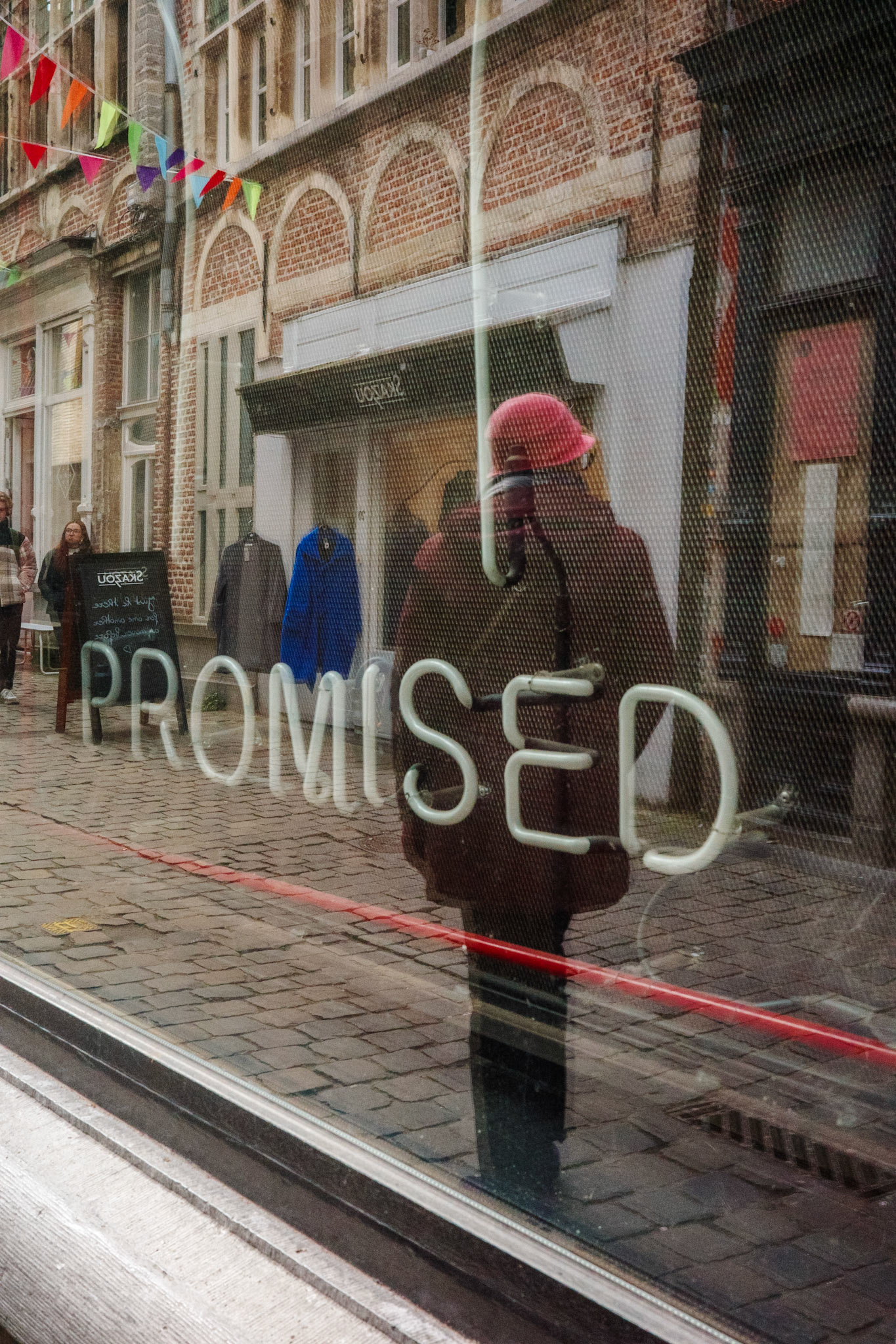 Soms worden bestaande affiches, etalages of reclamebeelden bewust opgenomen in de compositie om een visuele spanning of betekenislaag te creëren. Deze beelden zijn niet commercieel bedoeld, maar tonen mijn persoonlijke, artistieke interpretatie van wat zich op straat aandient.